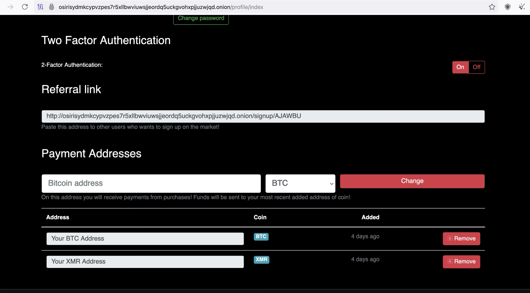 - Cryptocurrency wallet (BTC/XMR).